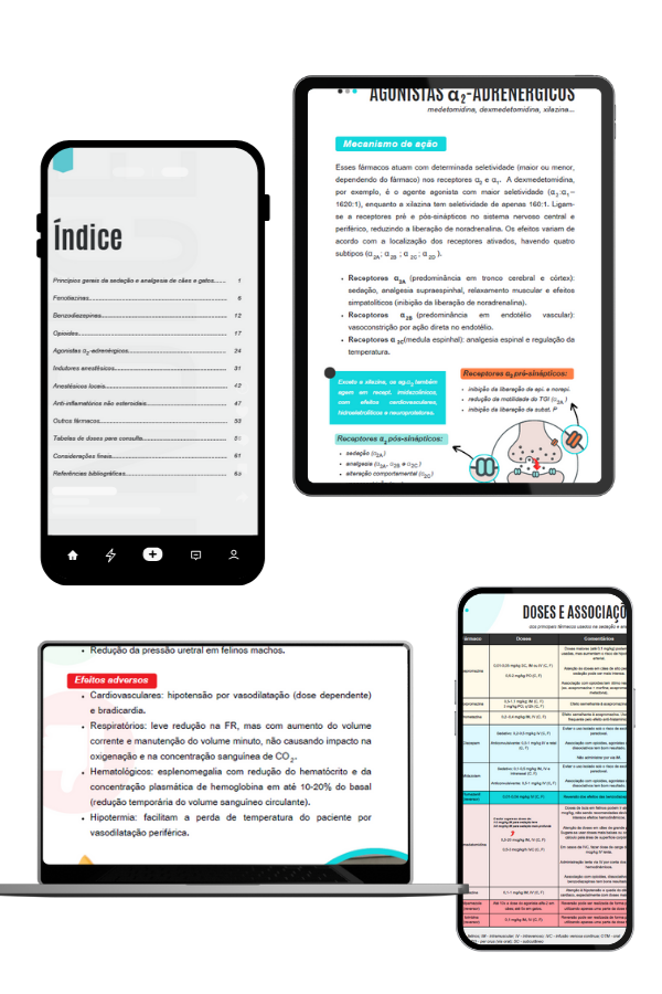 ✅ Uso clínico das fenotiazinas, benzodiazepinas, agonistas alfa-2 adrenérgicos, opioides, AINEs e muito mais
